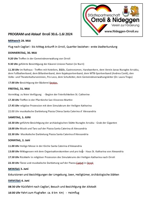 Wir möchten an diesem Nachmittag unsere bisherigen Erfahrungen und Tipps an diesem Nachmittag in lockerer Atmosphäre bei Kaffee und Kuchen austauschen und auch Interessierte über den diesjährigen Besuch in Orroli zum Santa Caterina Fest Anfang Juni 2025 informieren.